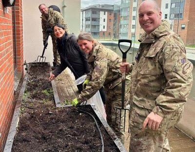 Real Lives RAF crew help staff spruce up terraces and flowerbeds at veterans’ care home 16th March 2023